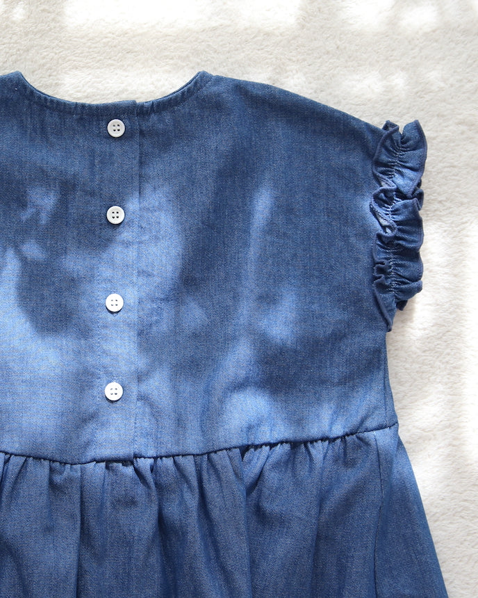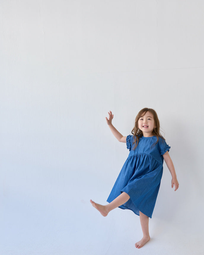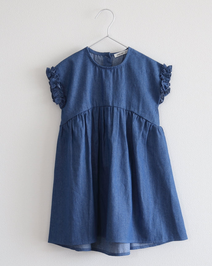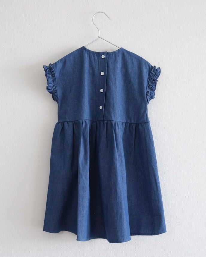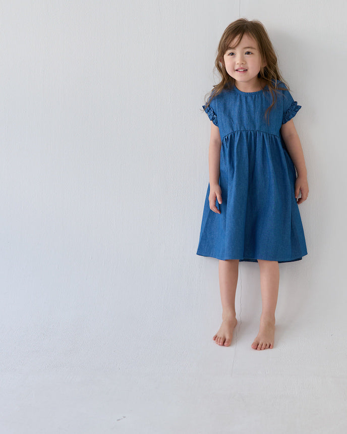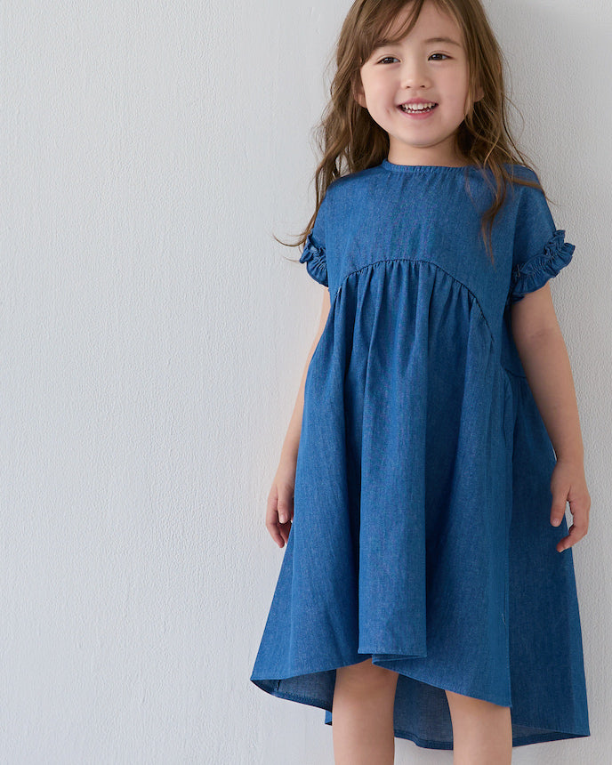 キッズ デニム フレンチ スリーブ ワンピース ブルー