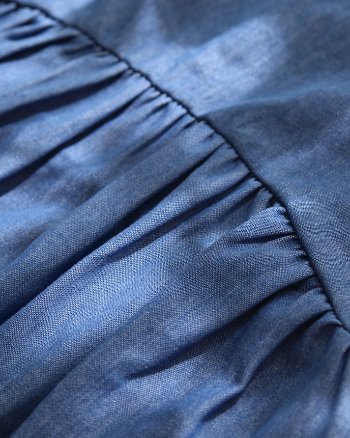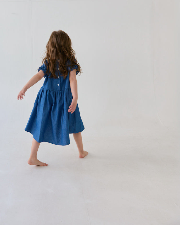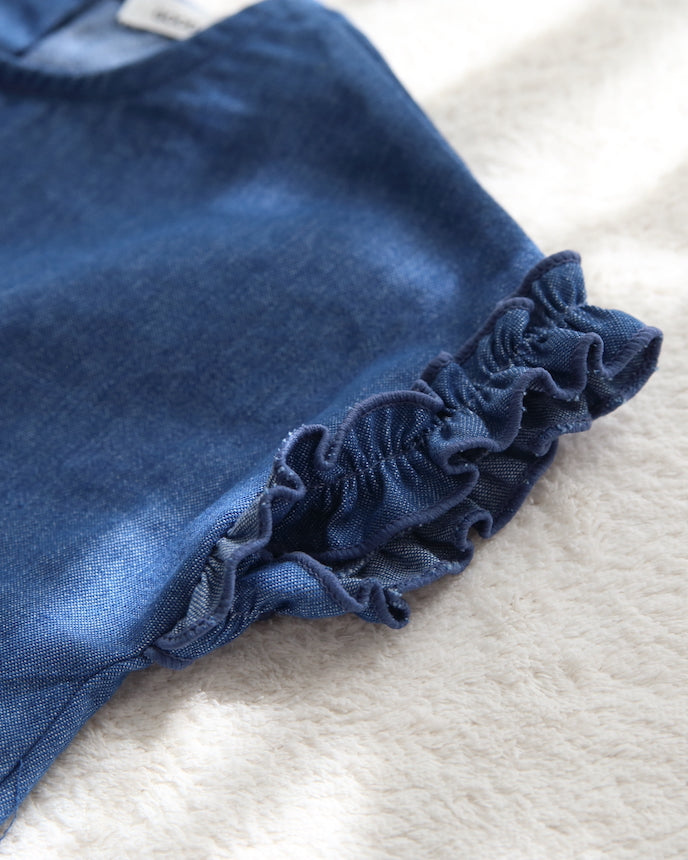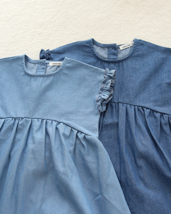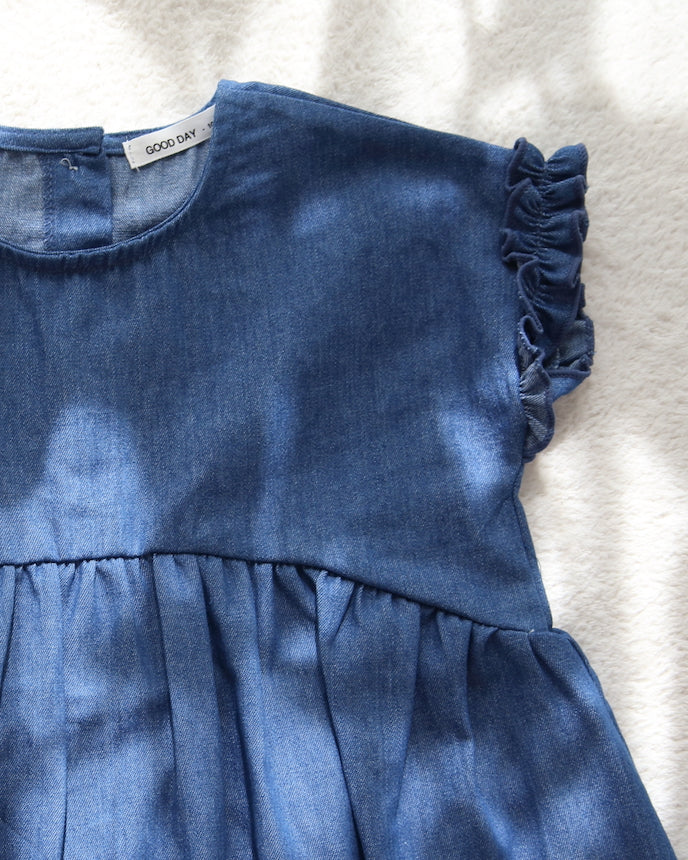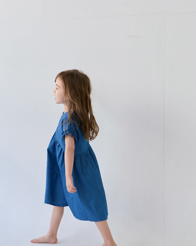キッズ デニム フレンチ スリーブ ワンピース ブルー