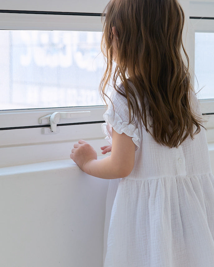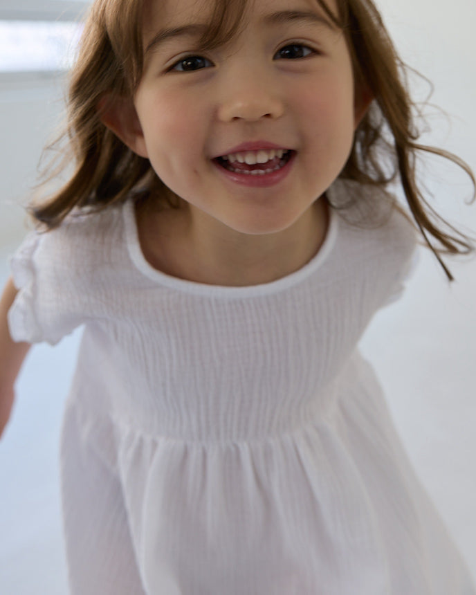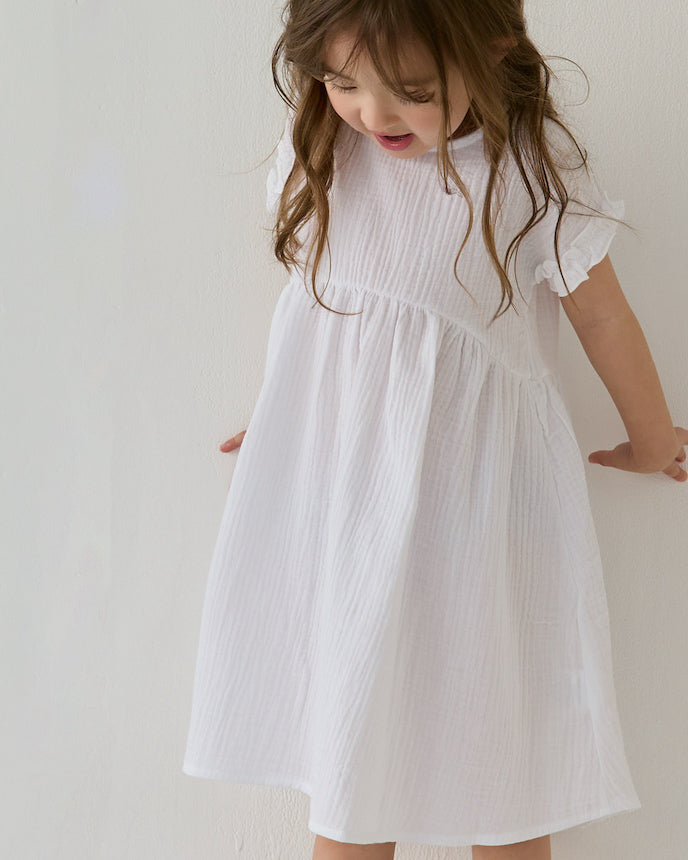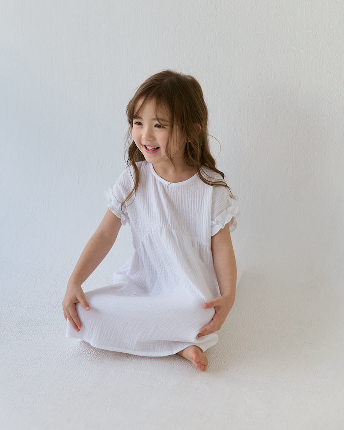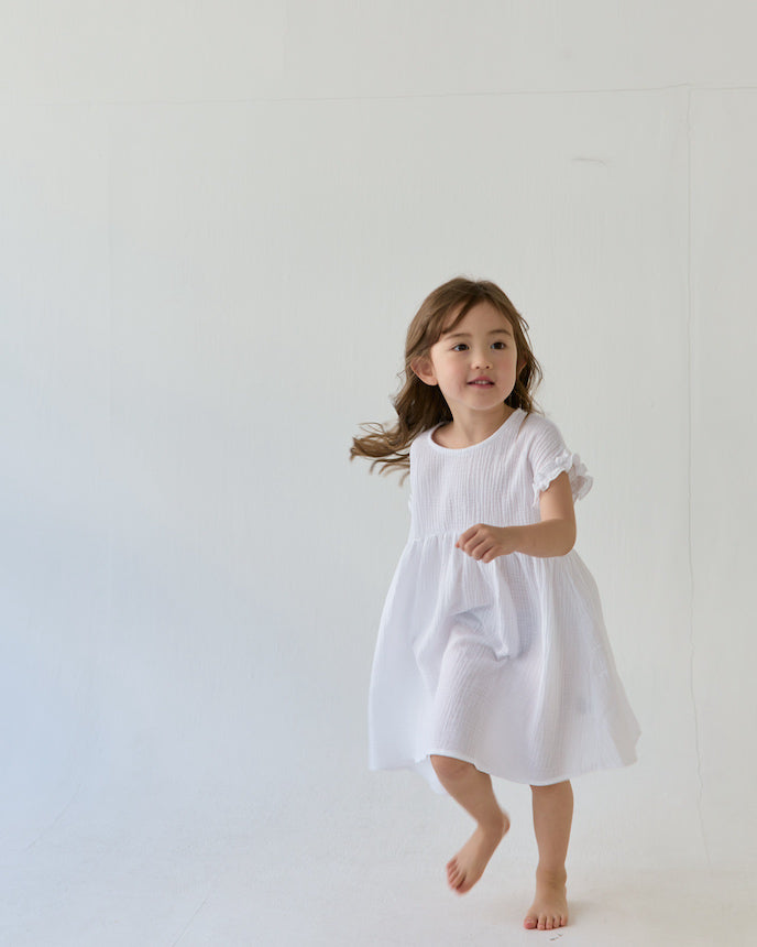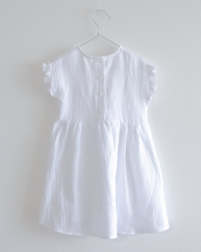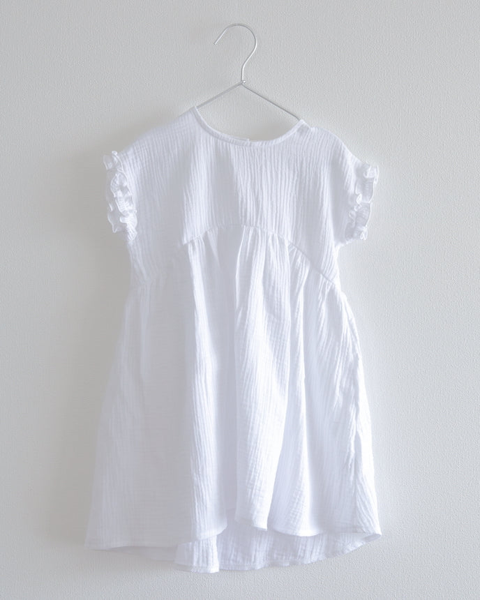 キッズ ガーゼ フレンチ スリーブ ワンピース ホワイト