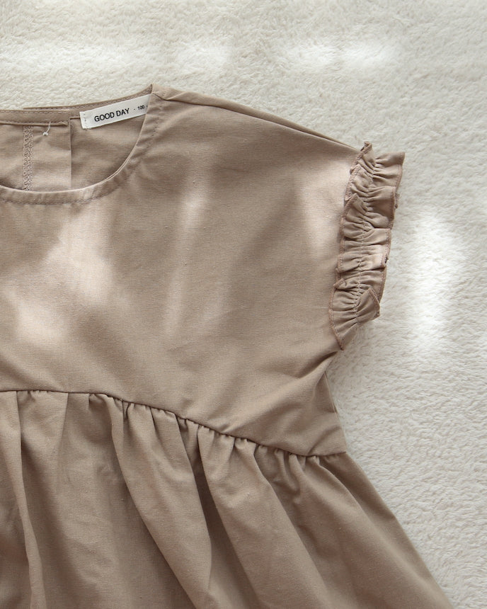 キッズ フレンチ スリーブ ワンピース ベージュ