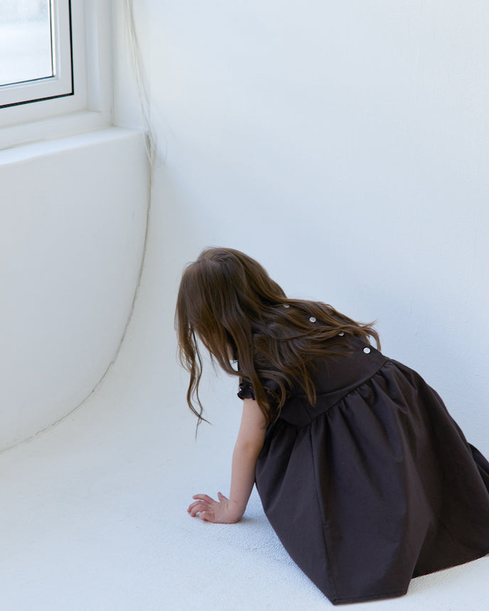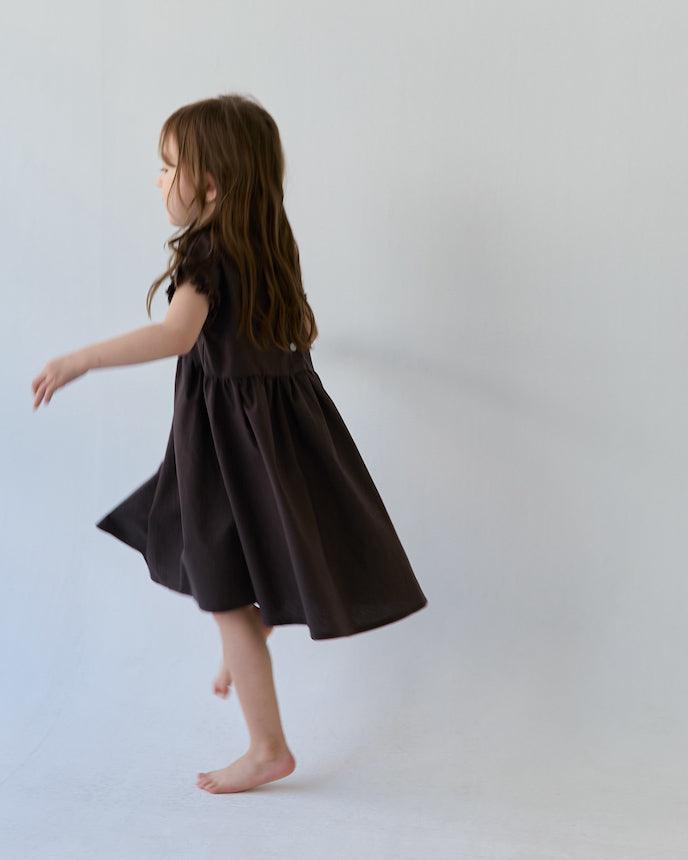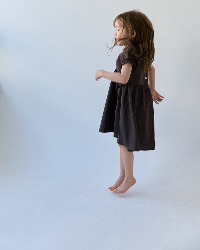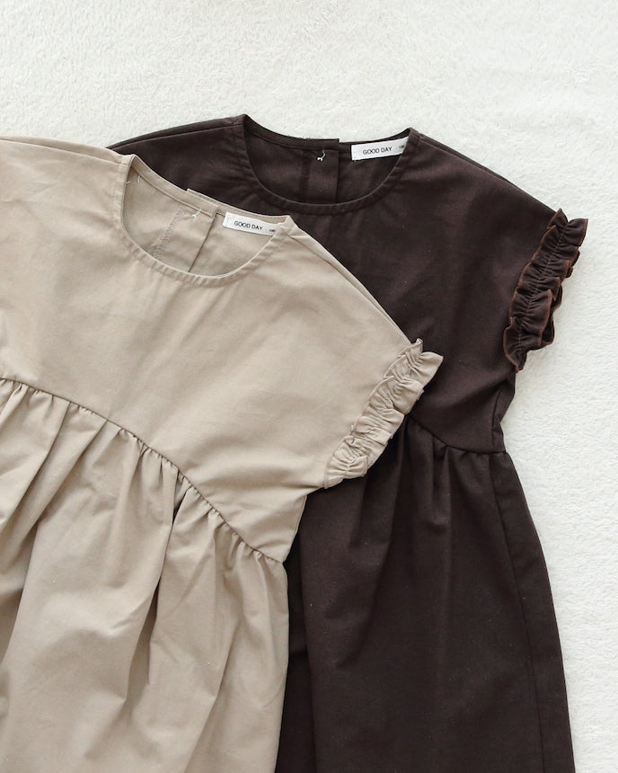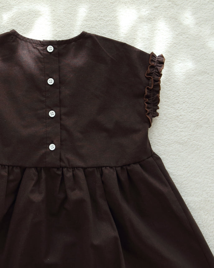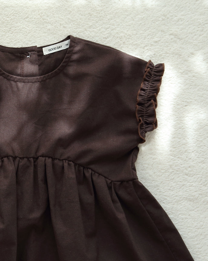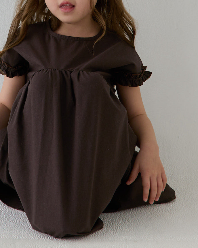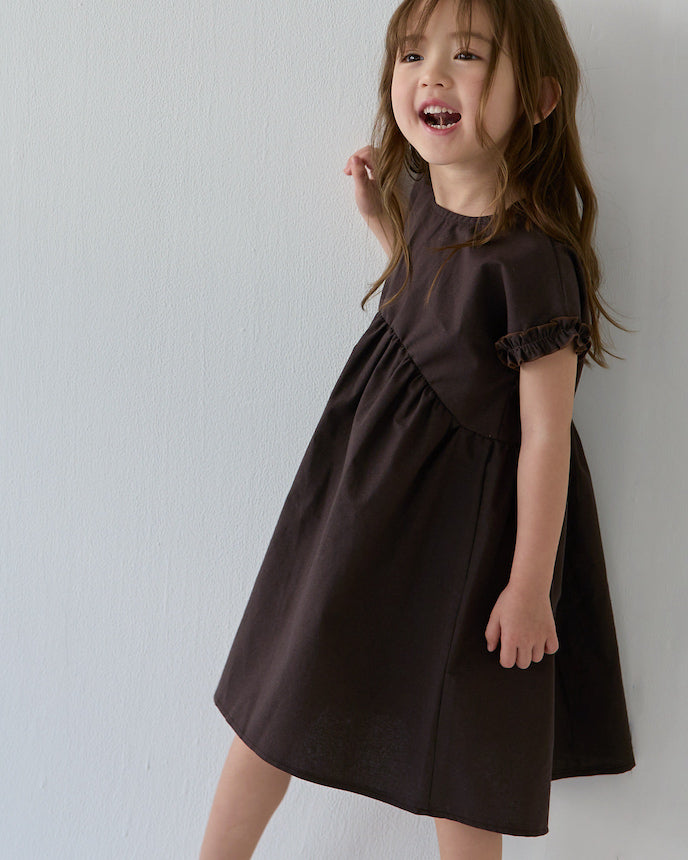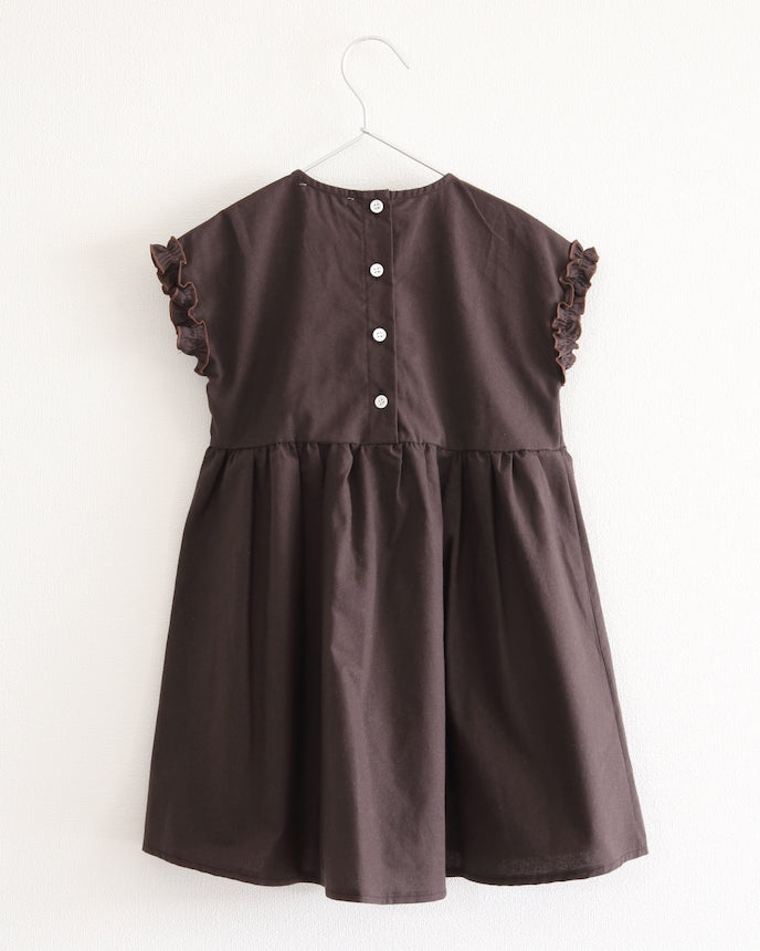 キッズ フレンチ スリーブ ワンピース ブラウン