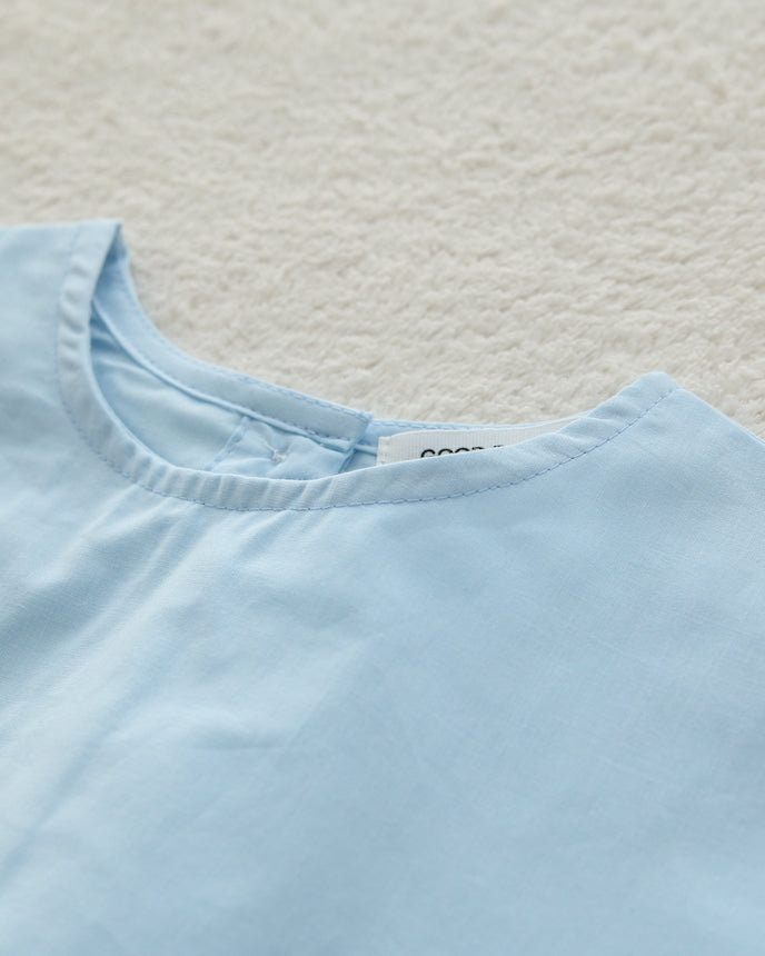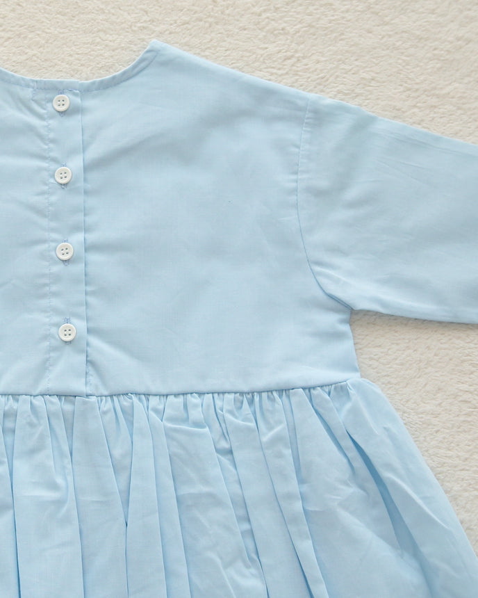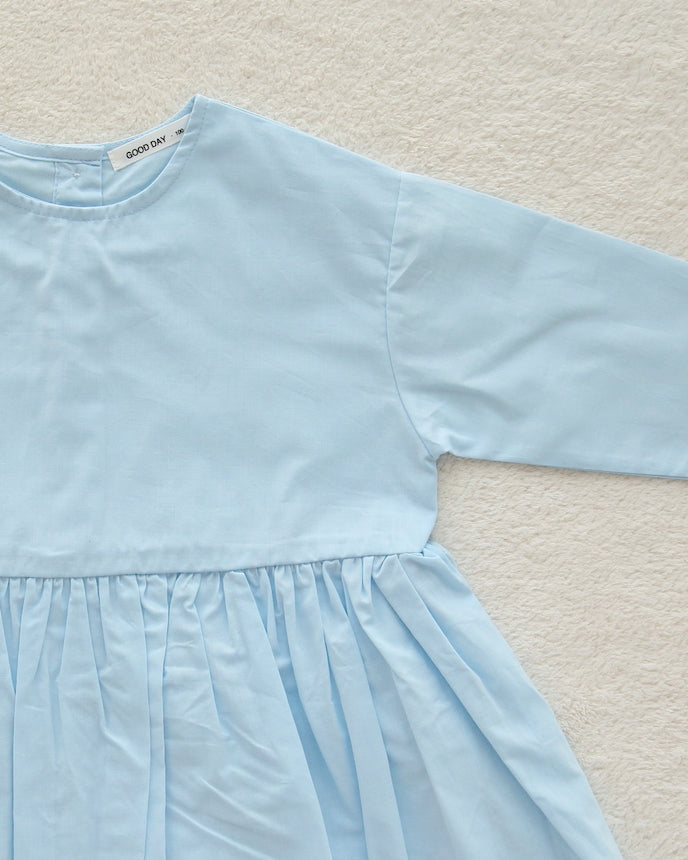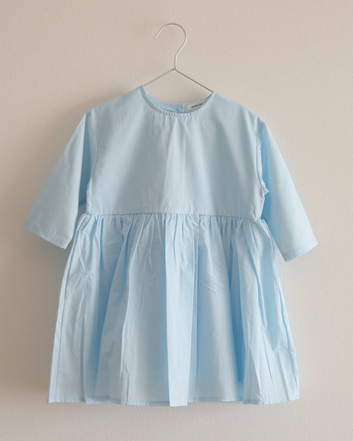 キッズ コットン ワンピース 9分袖 スカイブルー