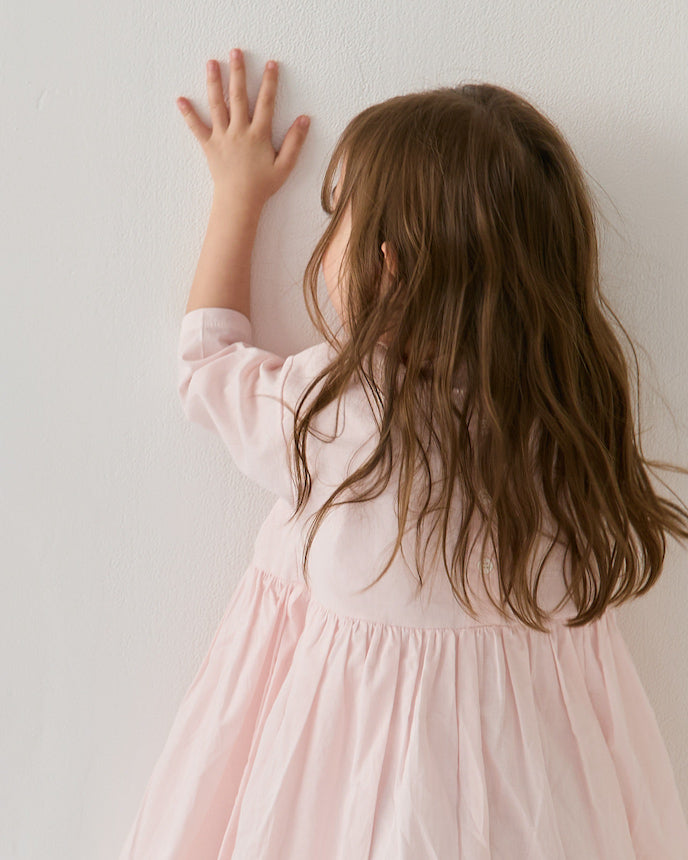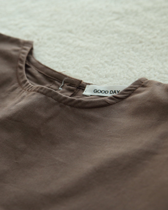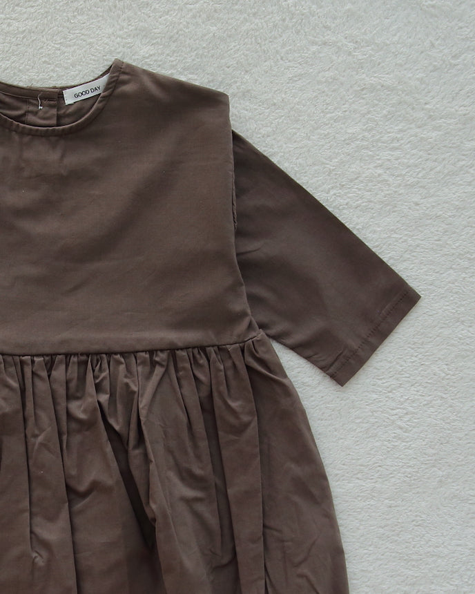 キッズ コットン ワンピース 9分袖 ブラウン