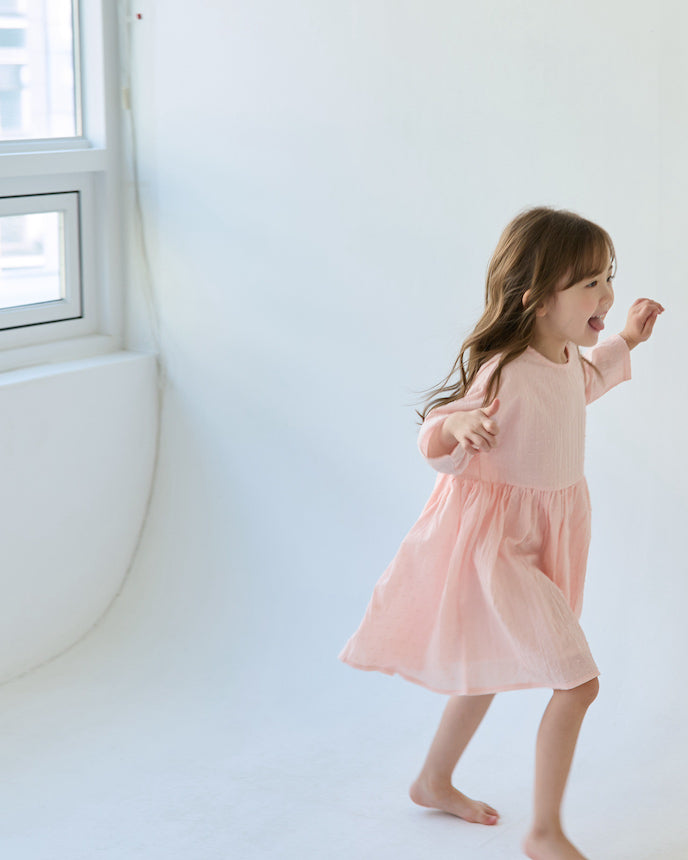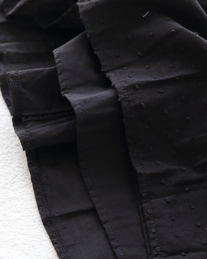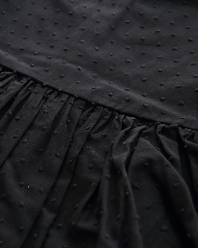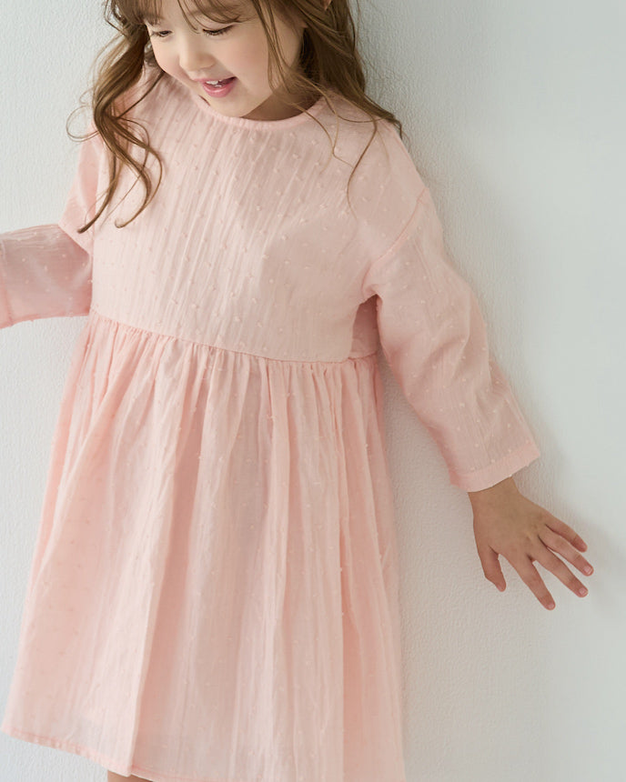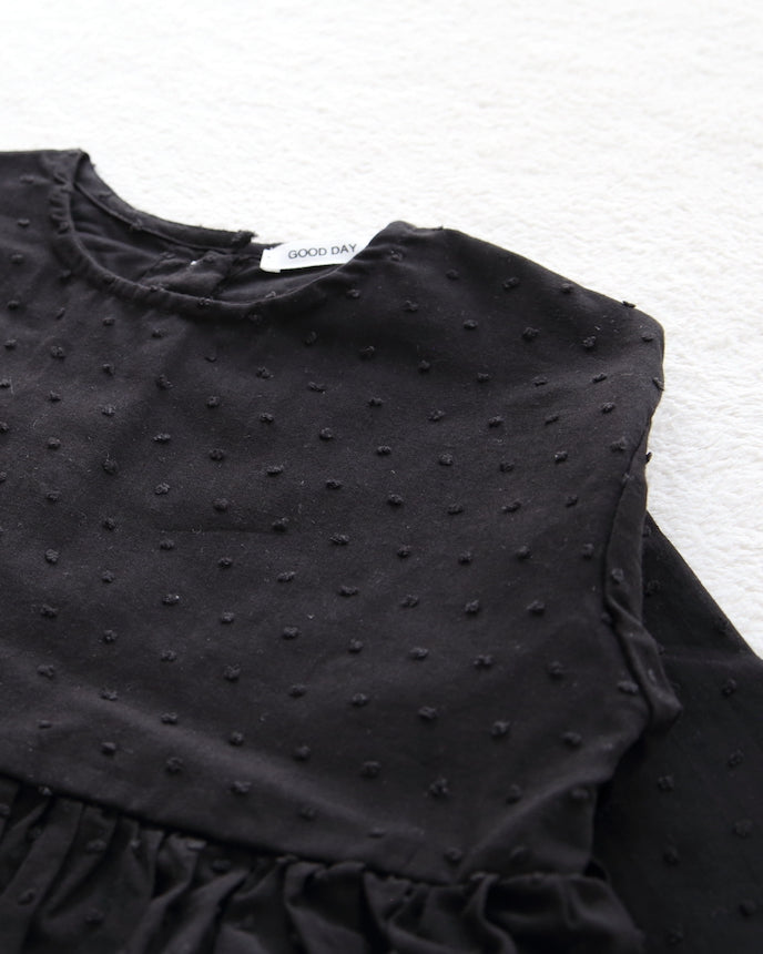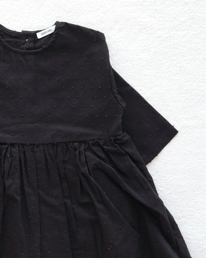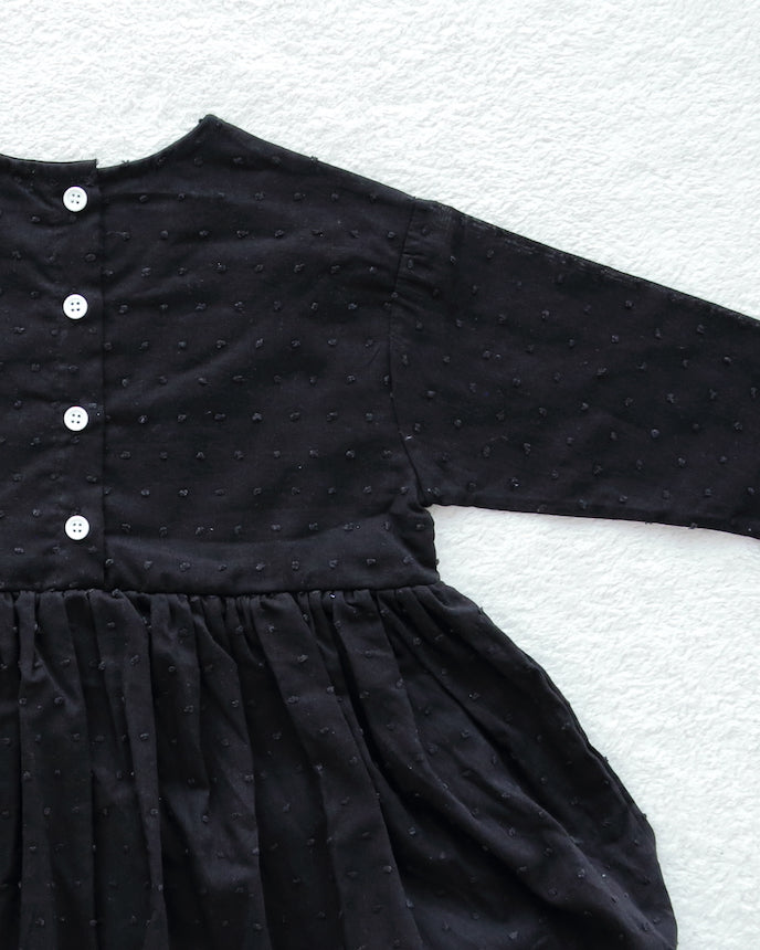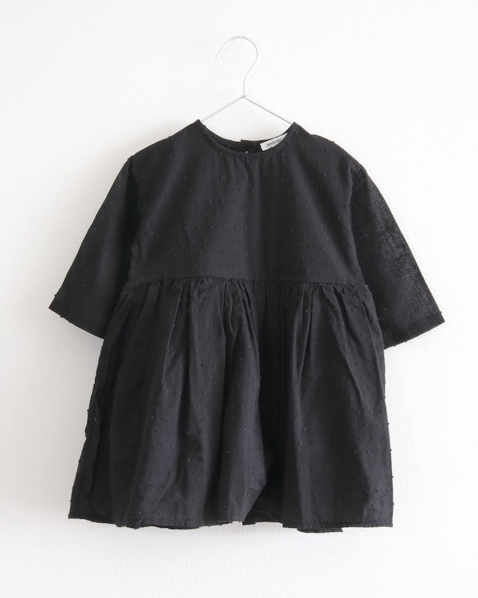 キッズ ジャガード ドット コットン ワンピース 9分袖 ブラック