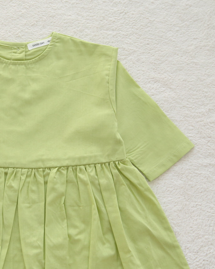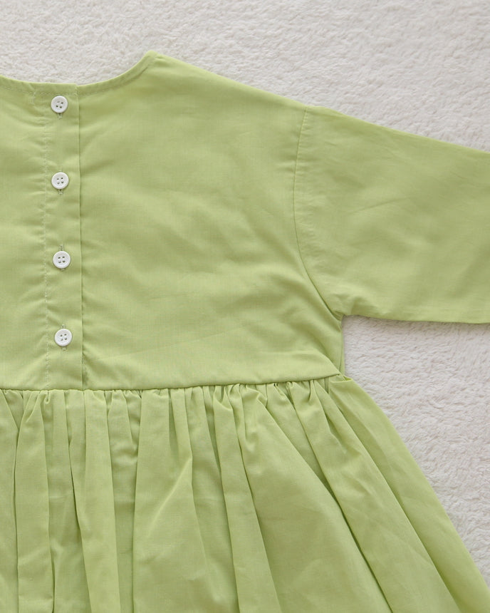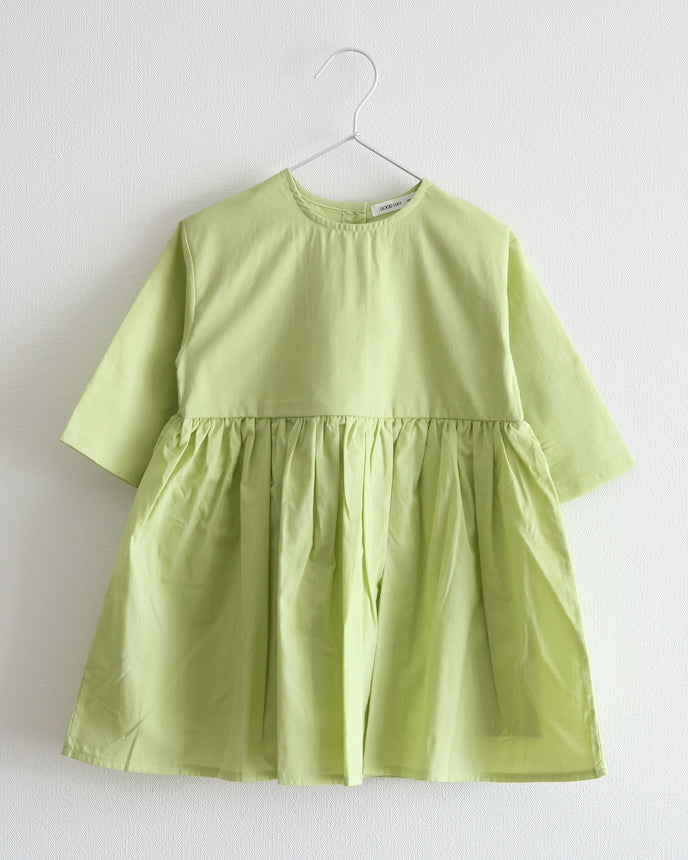 キッズ コットン ワンピース 9分袖 ミントグリーン