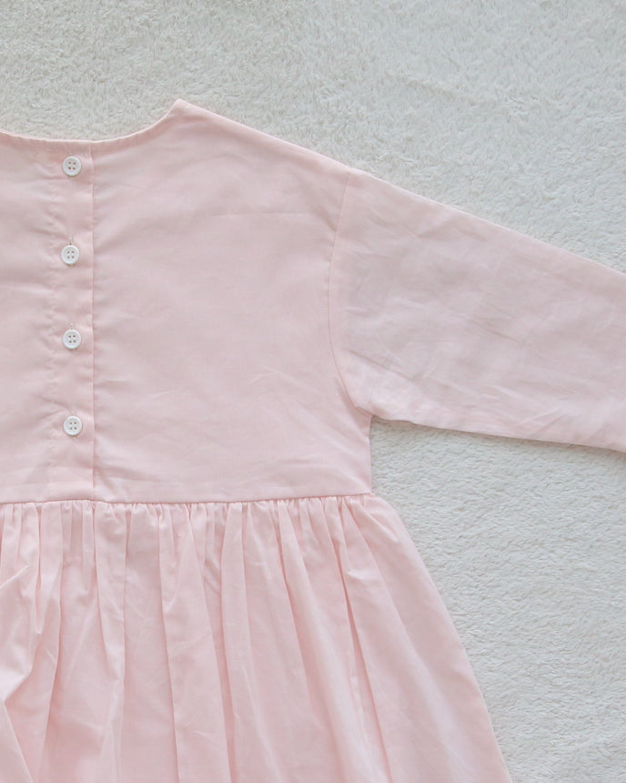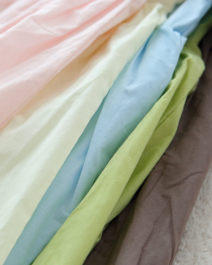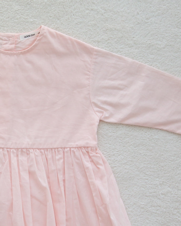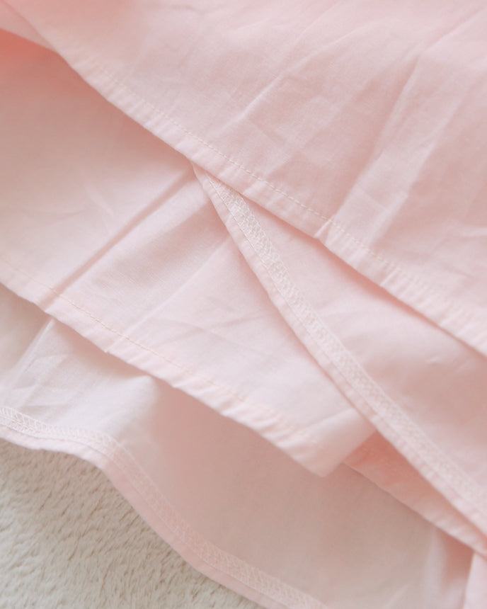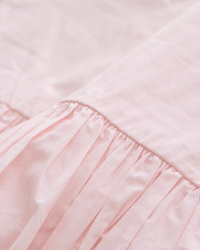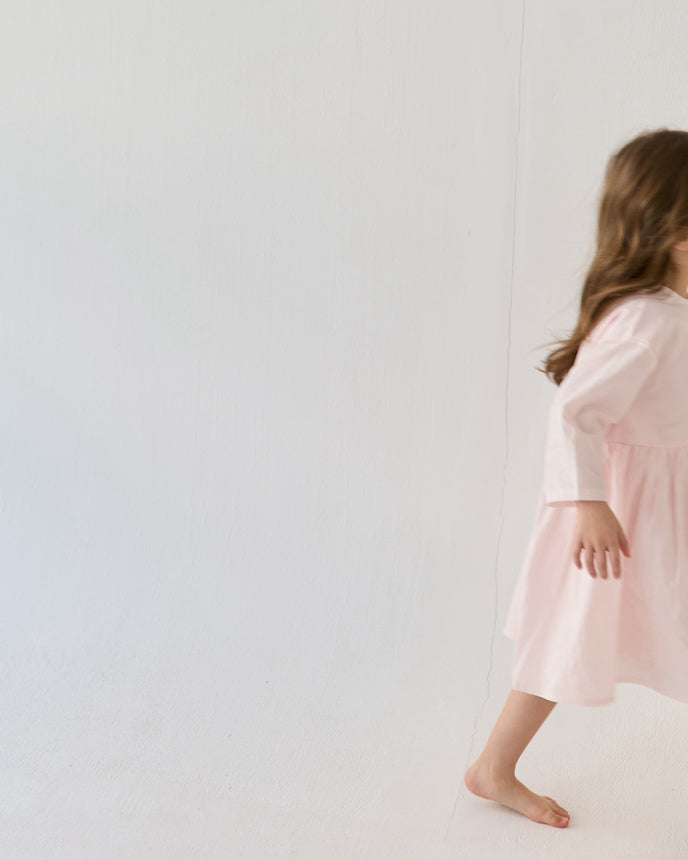 薄手の綿素材を贅沢に二枚重ねて、空気をはらんだような軽やかなシルエットに仕上げました。たっぷりギャザーと高めの切り替えが、動くたびにふんわり広がって、どの角度から見てもかわいい、思わず写真を撮りたくなる、春夏の主役ワンピースです。清涼感のある素材で肌離れがよく、汗ばむ季節も快適。着心地に敏感なお子さまにも嬉しいポイントです。