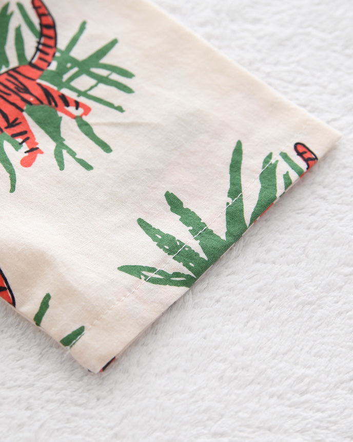 ・トラとグリーンの葉っぱがインパクト抜群の総柄デザイン