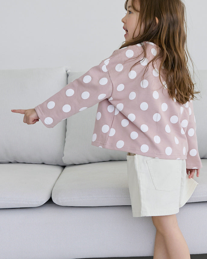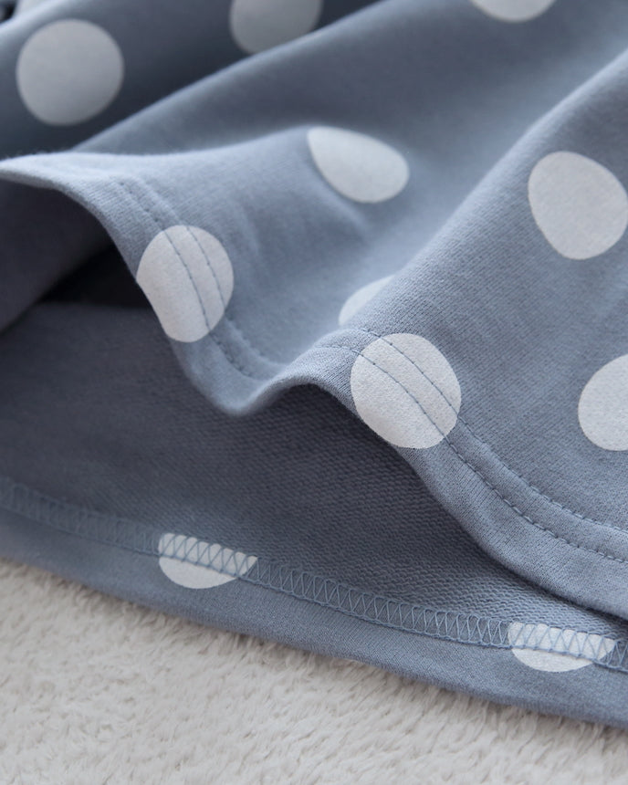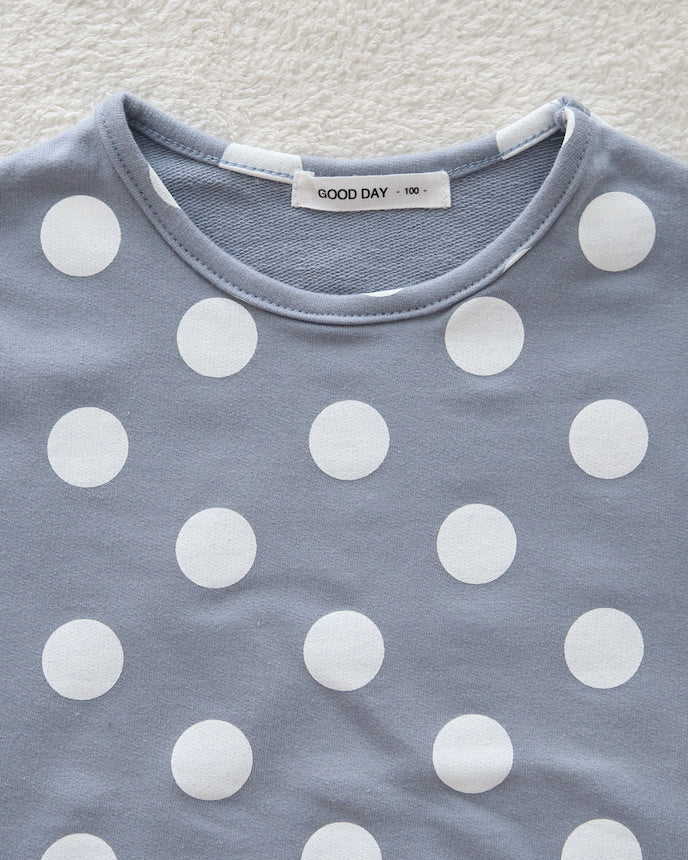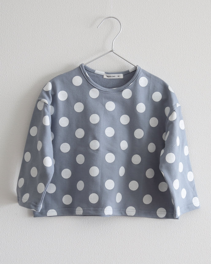ころんと愛らしい大きなドット柄に、思わず笑顔になるスウェットTシャツ。