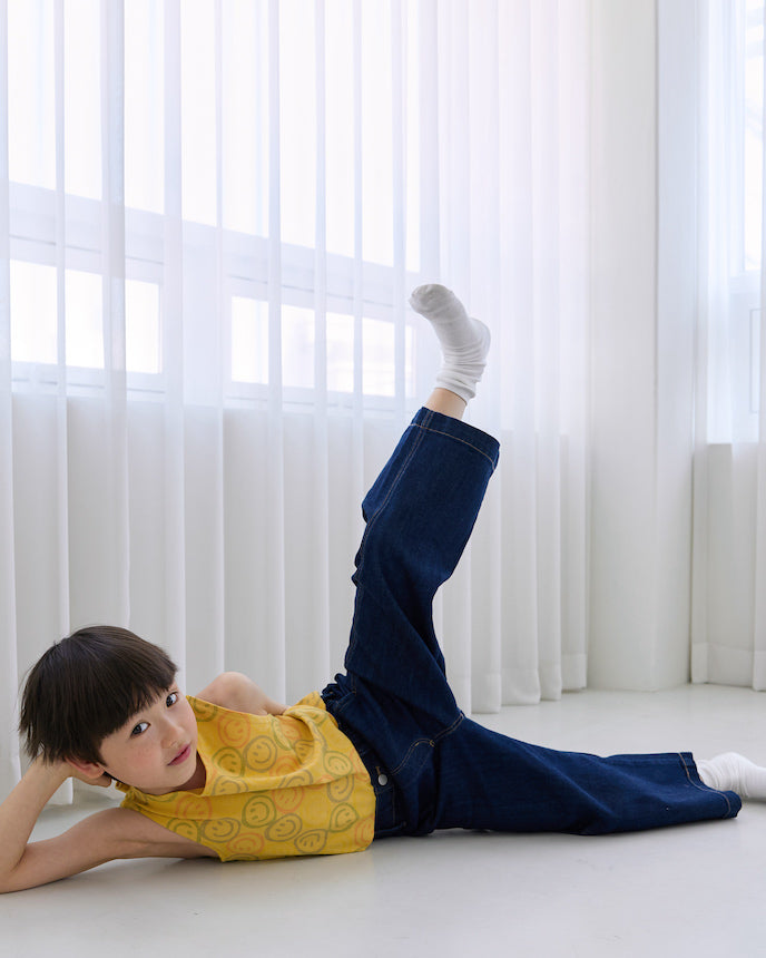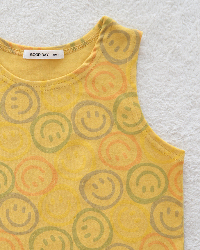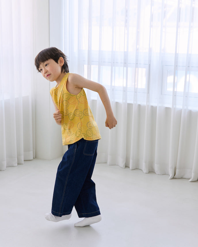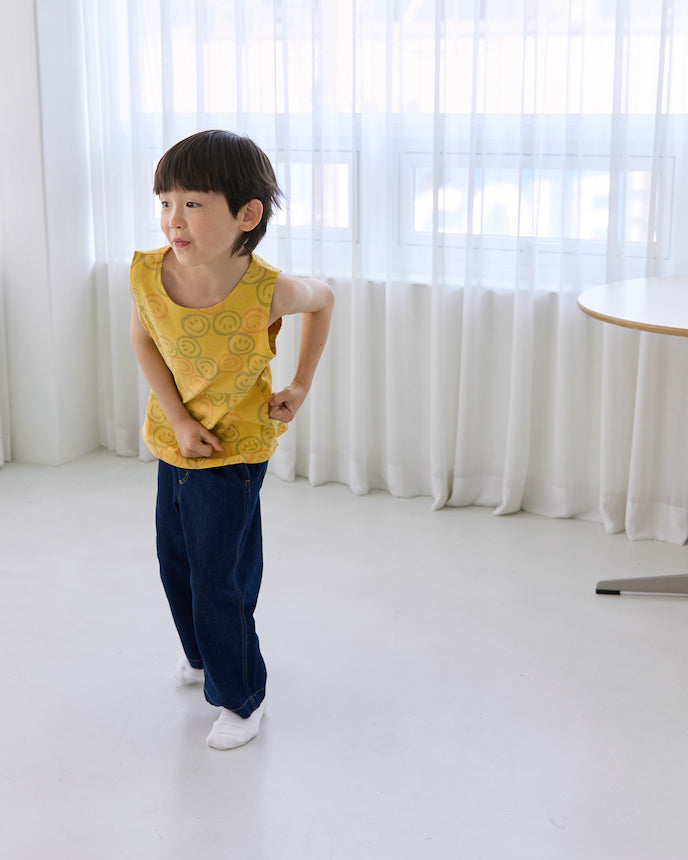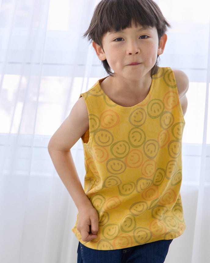 笑容的存在感出眾,只要戴上就會感到幸福!這款背心帶有可愛的圖案,會讓孩子們很開心,可以作為內層穿著,也可以單獨穿著。布料手感緊實有彈性,即使活動也不會感到局促,推薦給胖乎乎的孩子。我對底部內外都易於使用的長長度感到滿意。