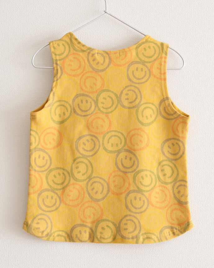笑容的存在感出眾,只要戴上就會感到幸福!這款背心帶有可愛的圖案,會讓孩子們很開心,可以作為內層穿著,也可以單獨穿著。布料手感緊實有彈性,即使活動也不會感到局促,推薦給胖乎乎的孩子。我對底部內外都易於使用的長長度感到滿意。