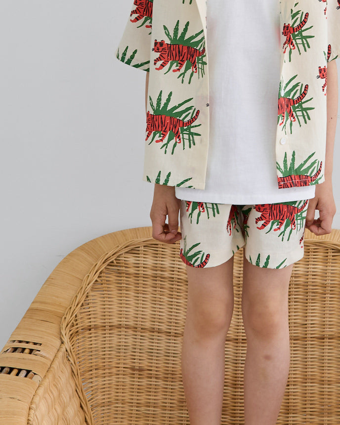 厚實、寬鬆的編織賦予它自然的外觀,非常適合夏天。虎紋圖案非常可愛,很吸引孩子們的眼球,所以它肯定是一款重磅旋轉單品。由於它未漂白,因此可以單獨穿著或作為夾克穿著。