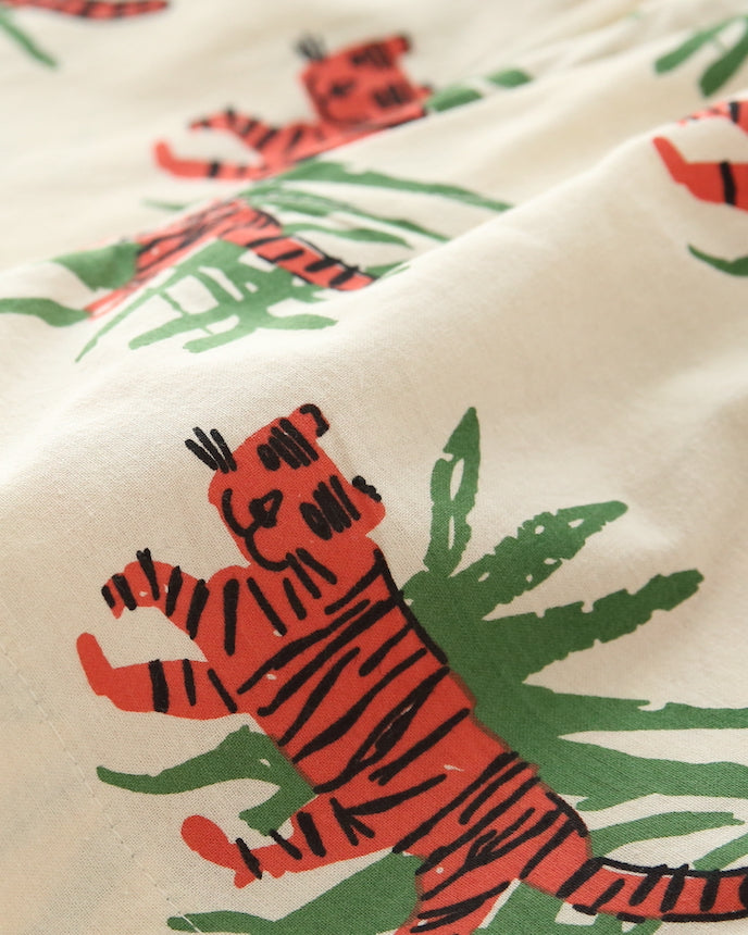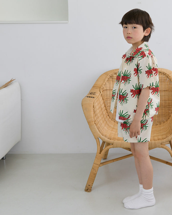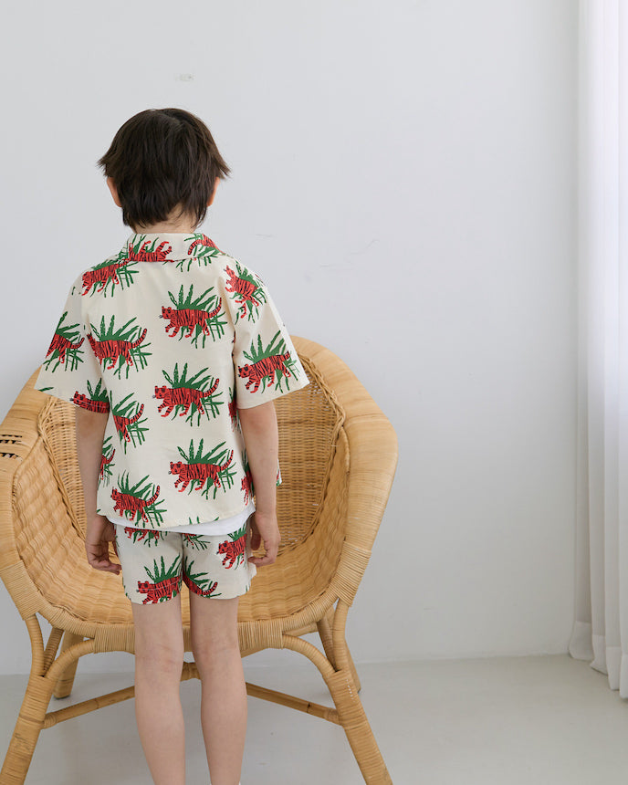 厚實、寬鬆的編織賦予它自然的外觀,非常適合夏天。虎紋圖案非常可愛,很吸引孩子們的眼球,所以它肯定是一款重磅旋轉單品。由於它未漂白,因此可以單獨穿著或作為夾克穿著。
