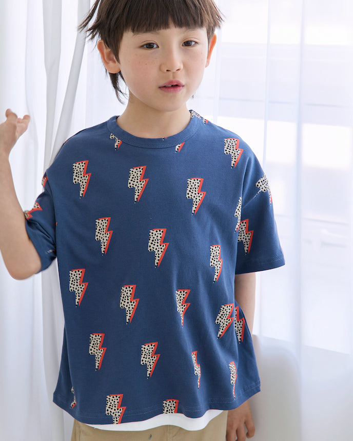 兒童 100% 棉 Thunder T 卹短袖灰色藍色