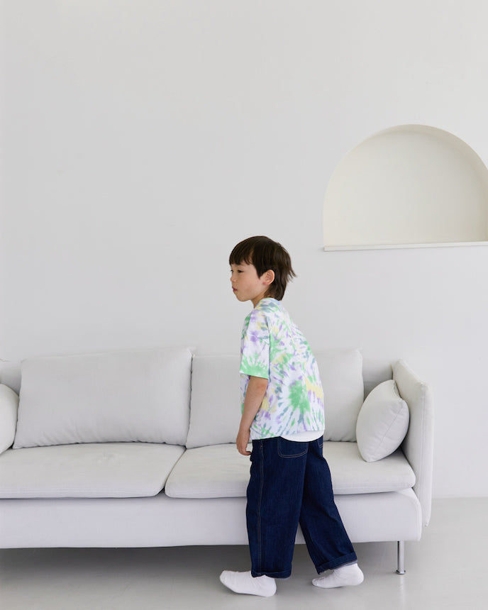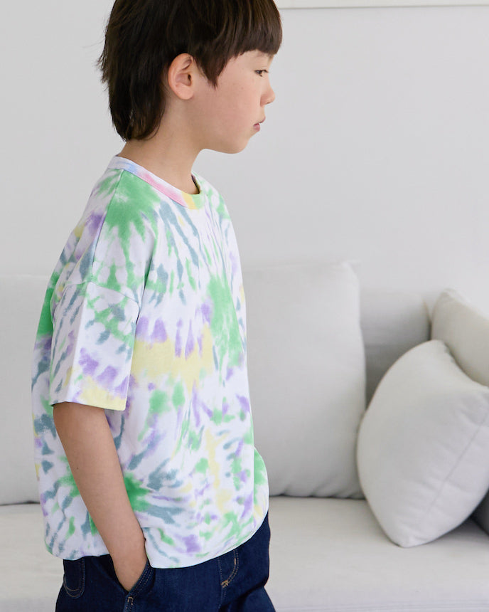 潑灑的水彩畫般的柔和色彩漸變充滿夏日氣息,與往常的T卹搭配更上一層樓。薄薄的 100% 棉材質在出汗的夏天非常有用。不僅推薦日常使用,也推薦外出使用。