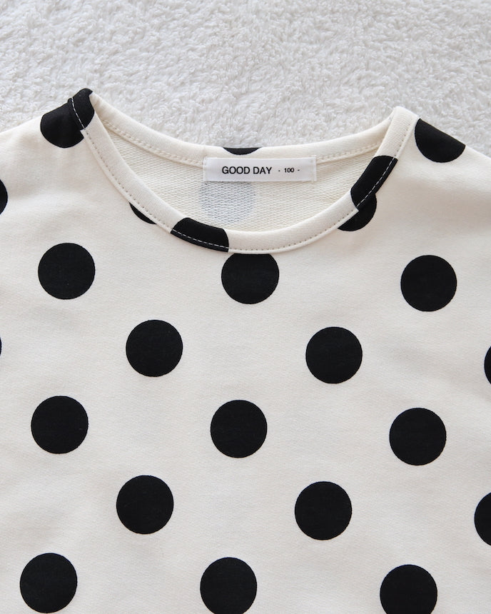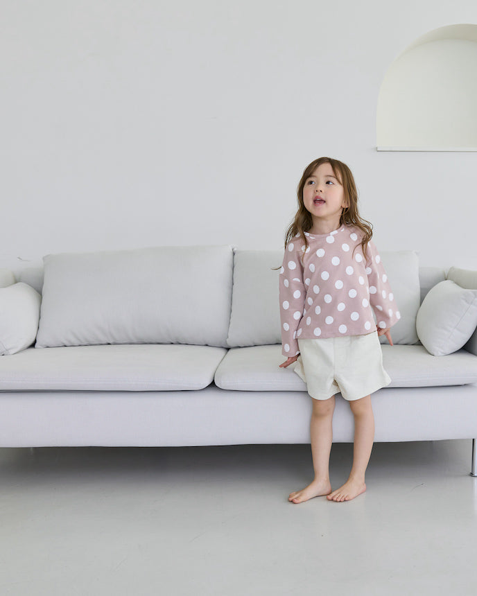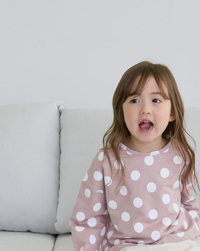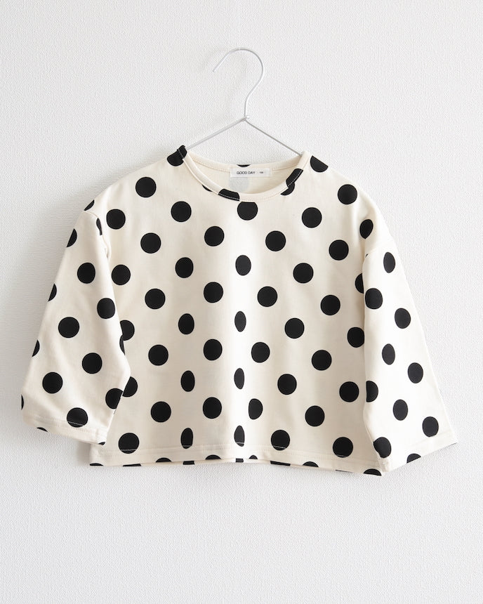 圓點圖案盡顯孩子的可愛,沉穩優雅的用色則讓其有別於其他T卹。由 100% 純棉製成,一年四季均可穿著,是日常裝束的必備單品。