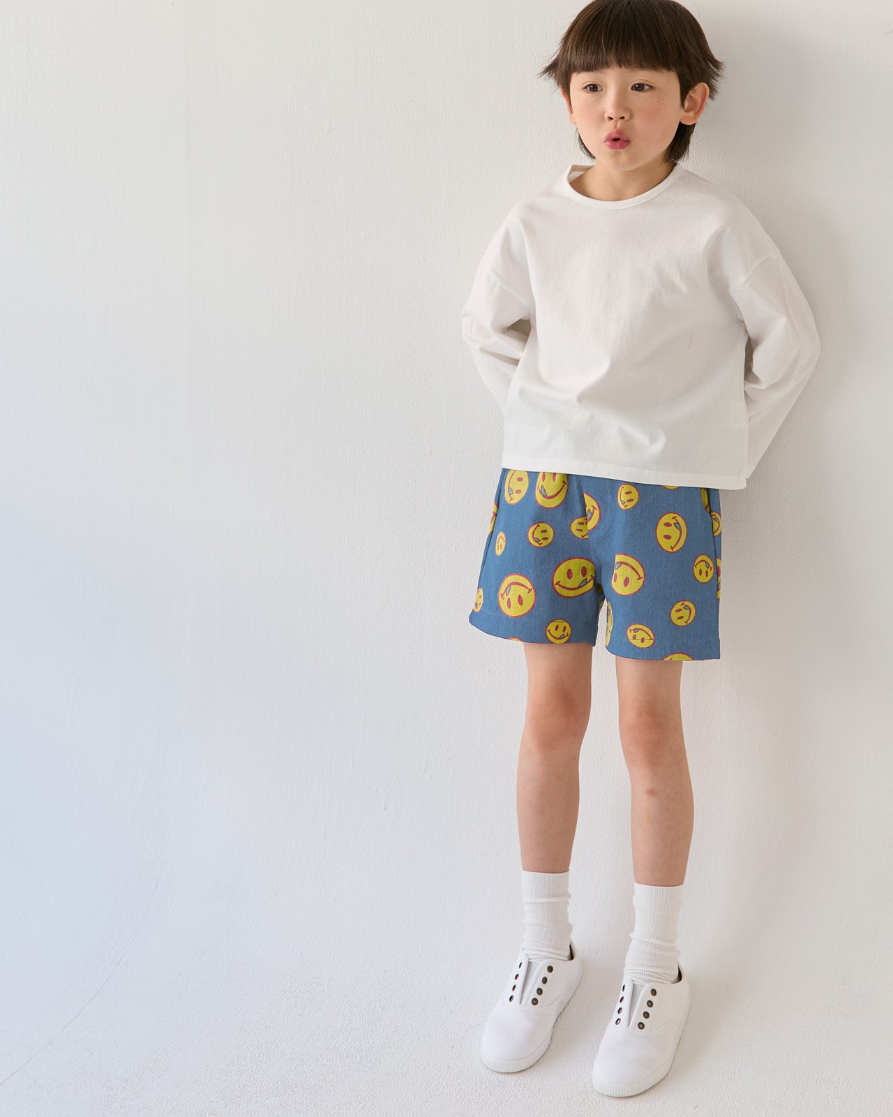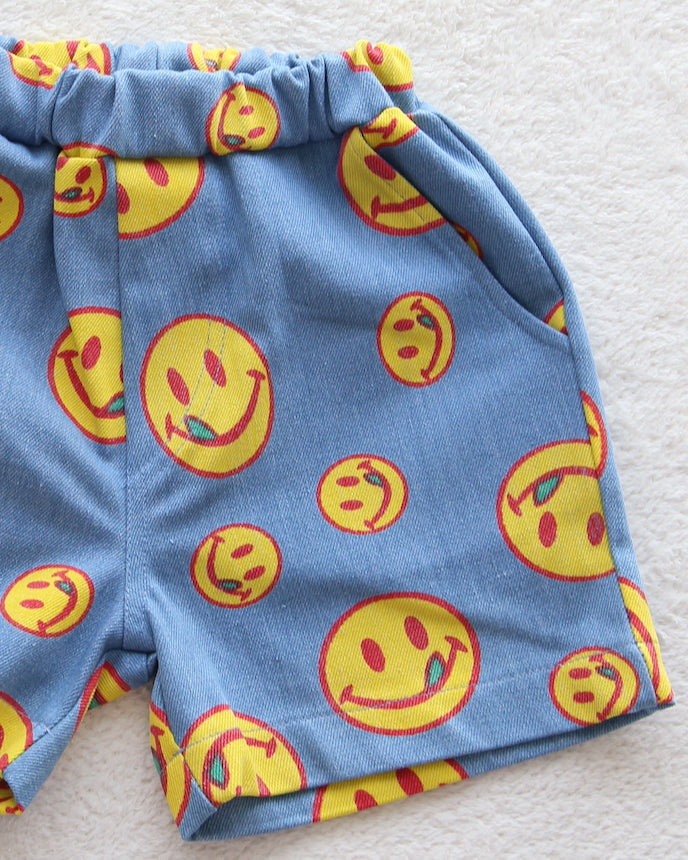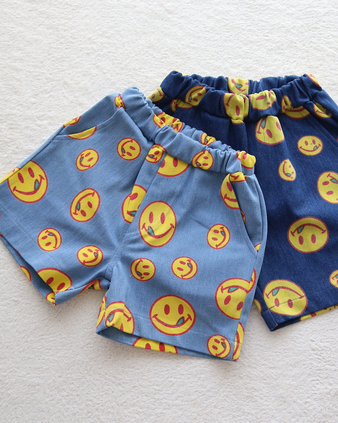 兒童短褲微笑藍色