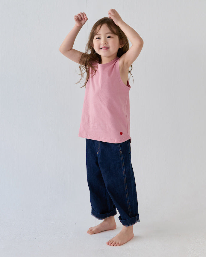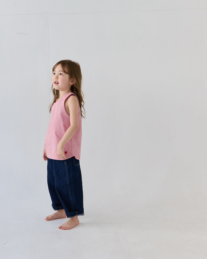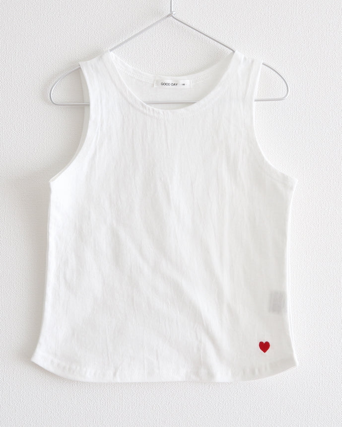 一款簡單的純色背心,非常適合日常搭配。下擺繡有可愛的心形圖案,作為內層疊搭成為焦點,也可單穿。我對底部內外都易於使用的長長度感到滿意。